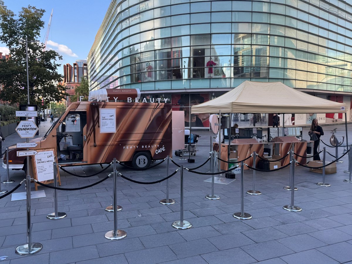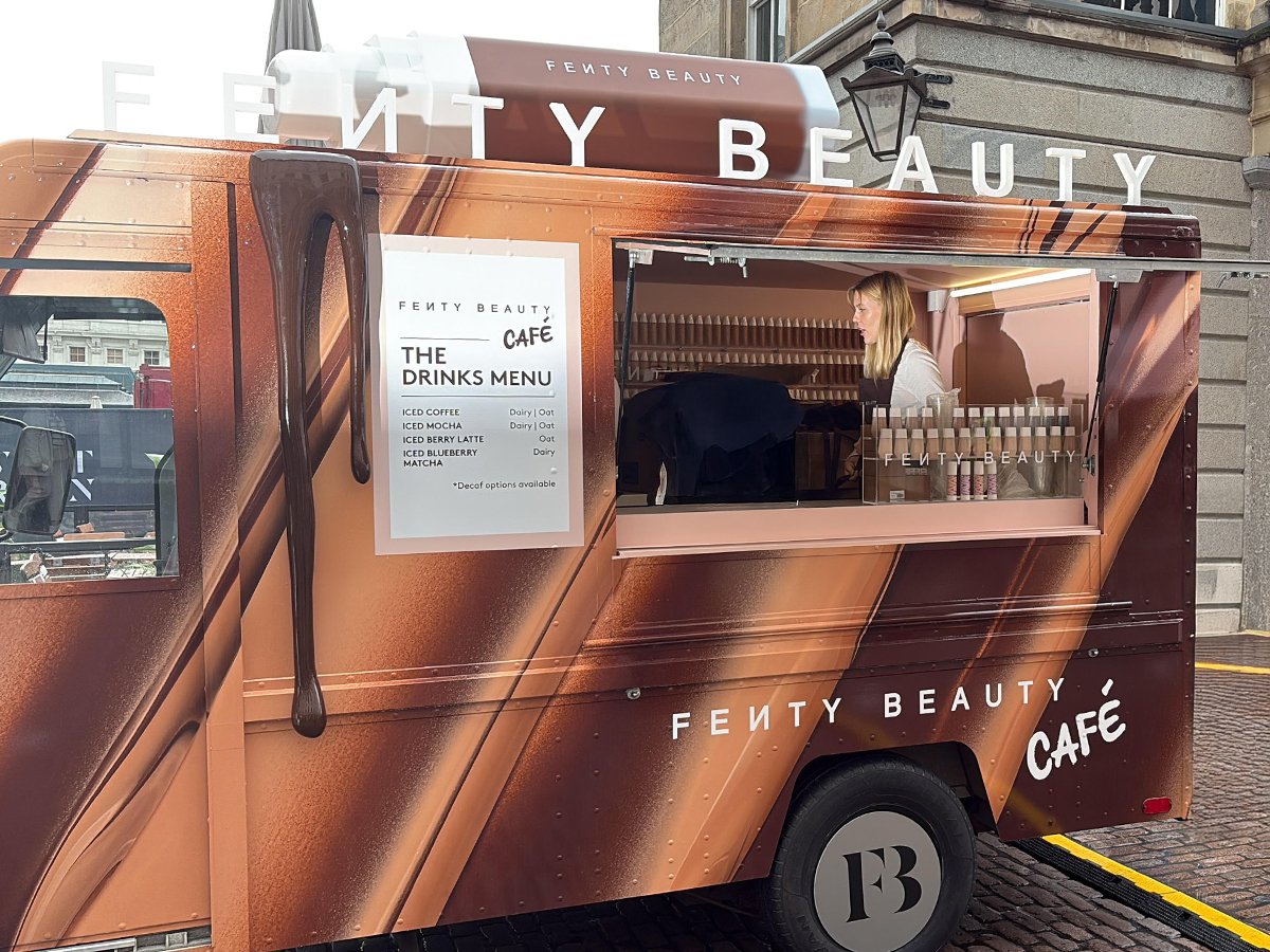 This classic US postal truck was converted into the Fenty Beauty Cafe. The vehicle visited multiple locations, with brand ambassadors engaging with the public, serving them coffee, and helping them find their perfect shade in Fenty's range of beauty products.